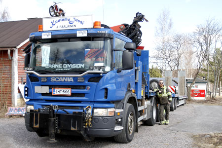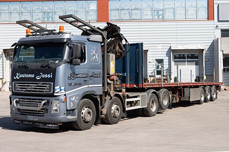 - Neliakselinen puoliperävaunuvetäjä nosturilla